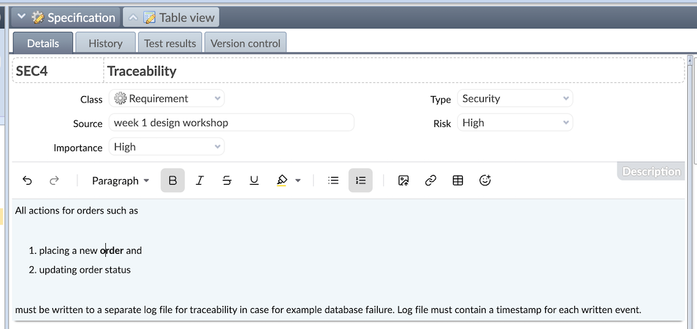 - The Traceability tab has been removed, and the links between requirements are shown in a table on the Details tab.